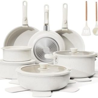 22-Piece Pots and Pans Set Non Stick with Removable Handles, Ceramic Cookware Set, Large-Capacity & Non Toxic, Induction & RV Compatible, Dishwasher Safe, PFAS/PTFE/PFOA Free, White