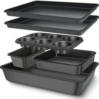 Baking Pans Set, Nonstick Bakeware Sets, Oven Pans for Cooking, AIVIKI 6 Pieces Baking Sheets Set Including Cookie Sheet, Deep Roaster Pan, Square Pan, Loaf Pan, Muffin Pan, Carbon Steel Baking Set