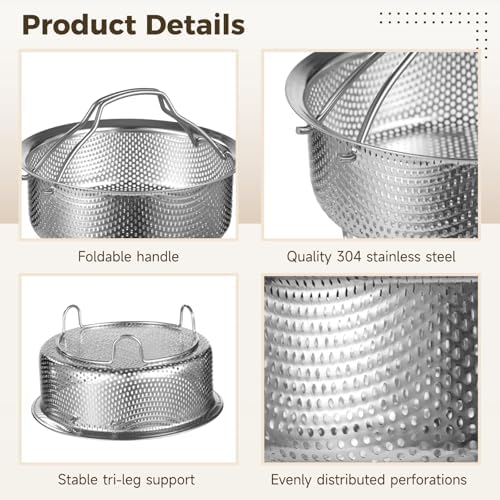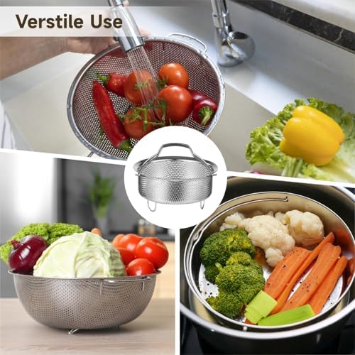 yeesport 304 Stainless Steel Steamer Basket with Carrying Handle, 7.1 in Food Steamer, Vegetable Steamer1 Insert for Pots, Multi-Purpose Perforated Strainer Colander Basket for Kitchen, Camping